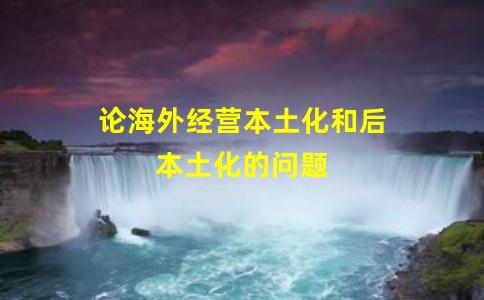 一个企业的本土化由三个方面的因素决定,即:外部市场条件、总部的管理要求、驻外机构的自我融入意愿(或者说是驻外经理的决心与勇气)。