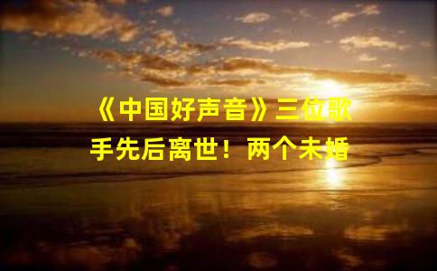 《中国好声音》三位歌手先后离世!两个未婚,一个儿子不到一岁