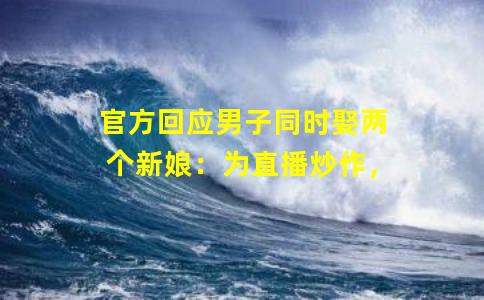 民圆回应男子同时娶两个新娘:为直播炒做,警圆已减进考查